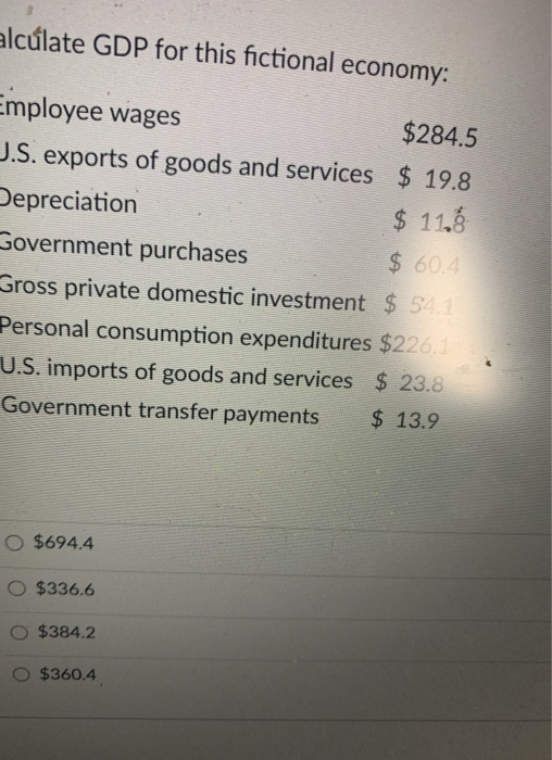 Solved The Expenditures Approach To Calculate Gdp Uses The Chegg Com